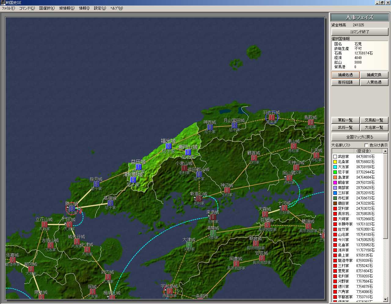 とりあえず今回は尼子を全国規模の大名にしたところで終了